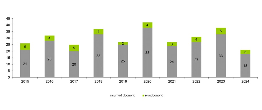 Doonorite arv Eestis 2014-2024