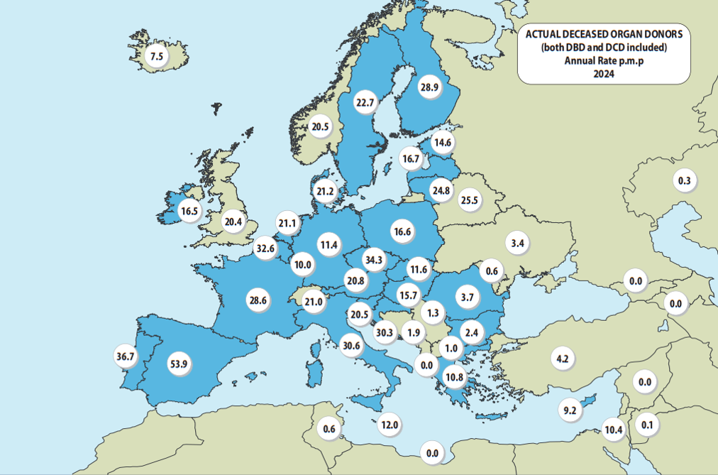 Surnud doonoreid Euroopas miljoni elaniku kohta 2024