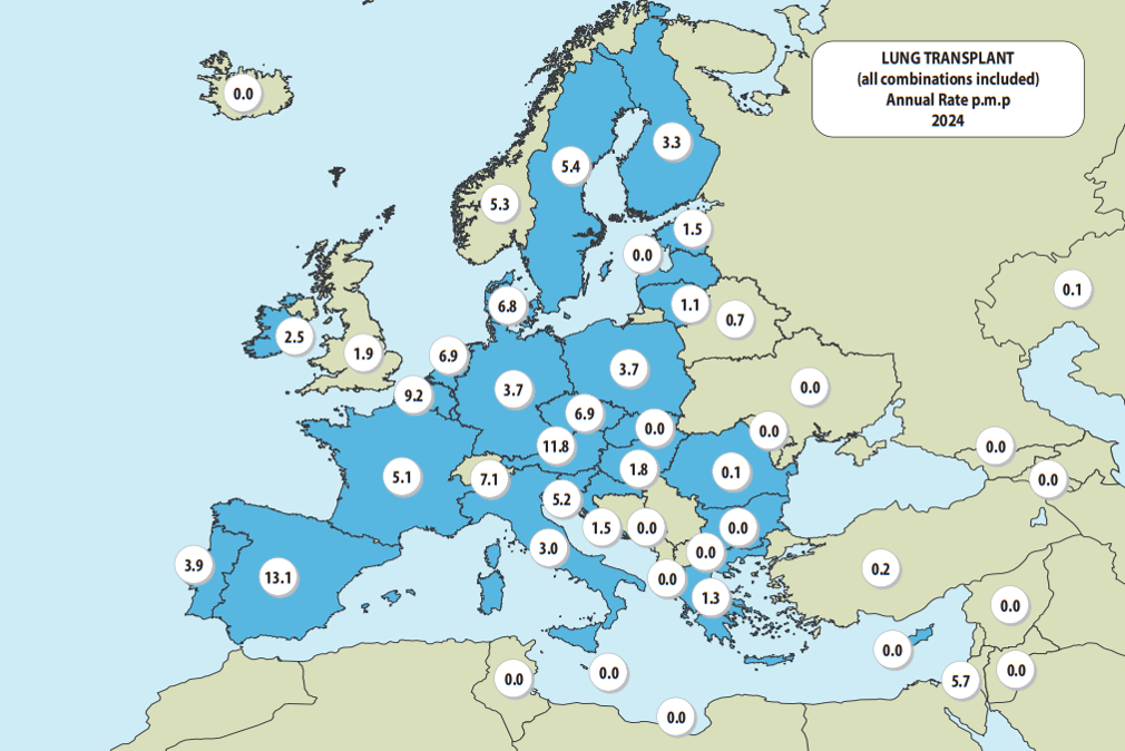Kopsusiirdamised Euroopas miljoni elaniku kohta 2024
