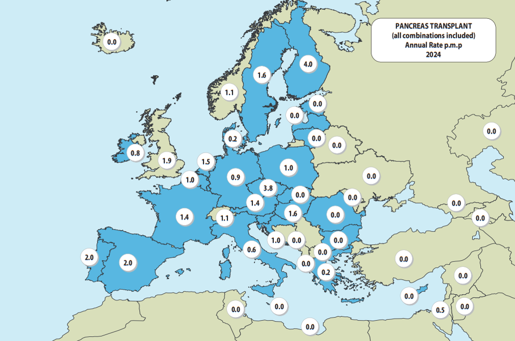 Pankreasesiirdamised Euroopas miljoni elaniku kohta 2024