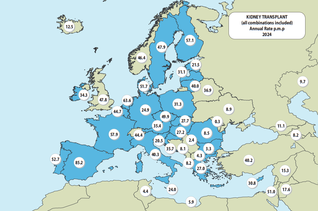 Pankreasesiirdamised Euroopas miljoni elaniku kohta 2024